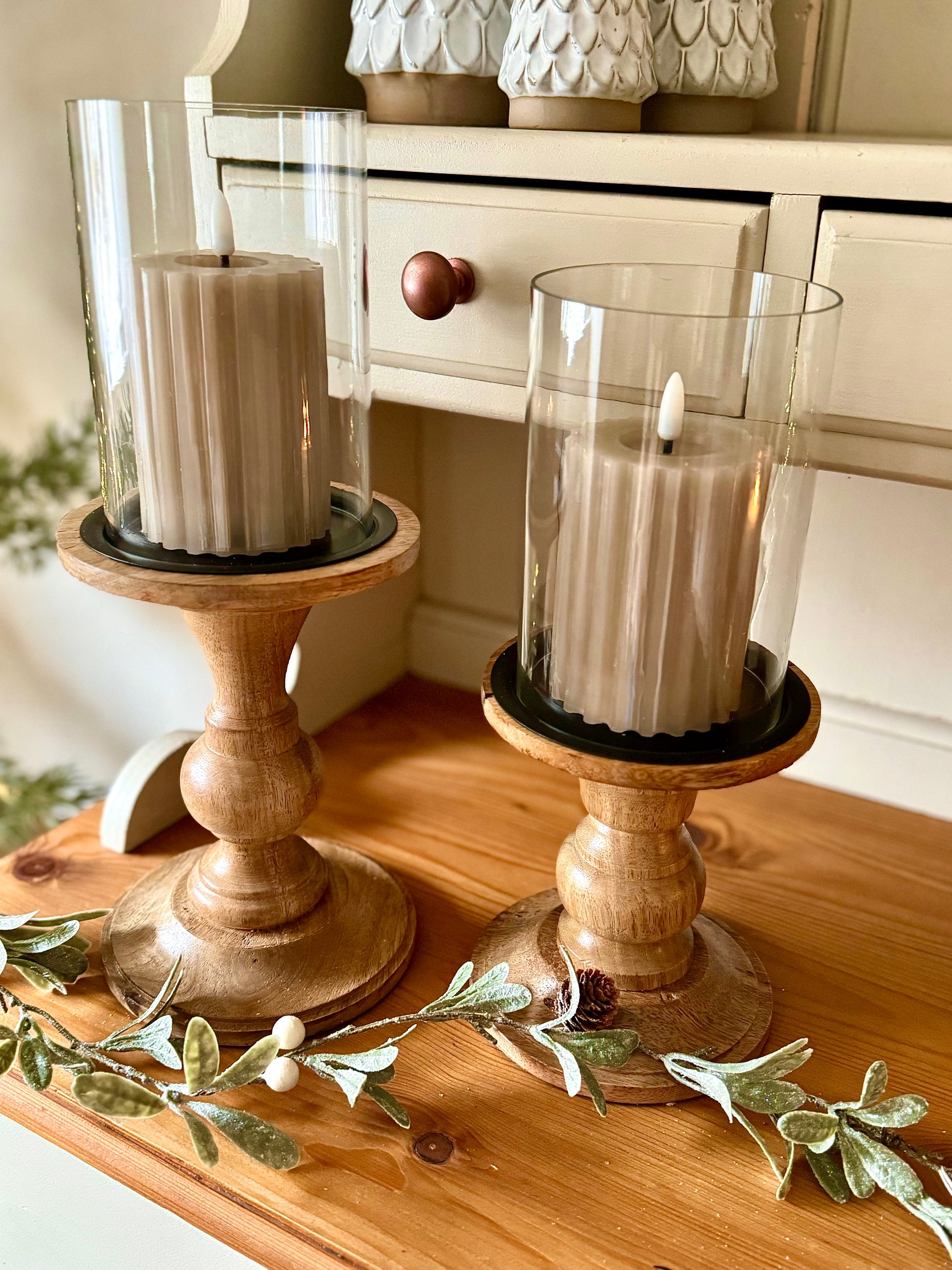 Wooden and Glass Pillar Candle Holder
